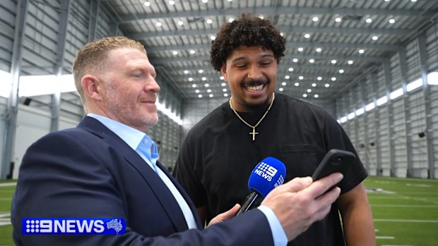 Las Vegas’taki yüksek performans merkezinde, Nine’dan Danny Weidler, Burton’ın vuruşunun videosunu Raiders oyuncusu Caleb Rogers’a gösterme fırsatı buldu.