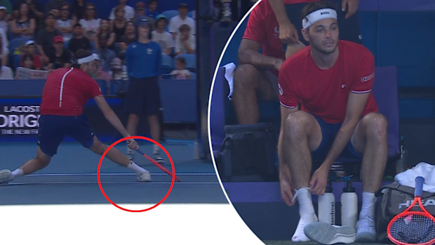 Taylor Fritz, ayak yarasıyla kortu terk ediyor.