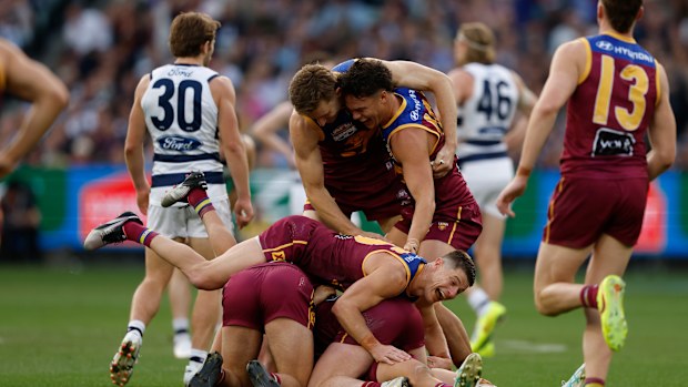 Lions oyuncuları, AFL Grand Final’da kutlama yaparken.