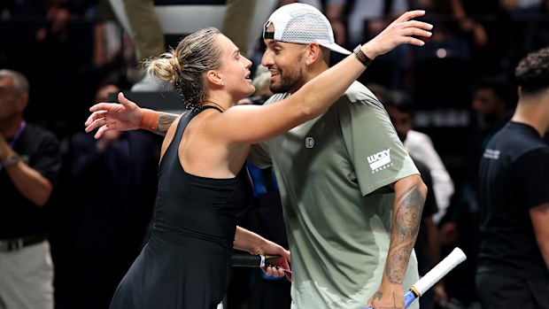 Aryna Sabalenka ve Nick Kyrgios maç sonrası kucaklaşıyor Getty
