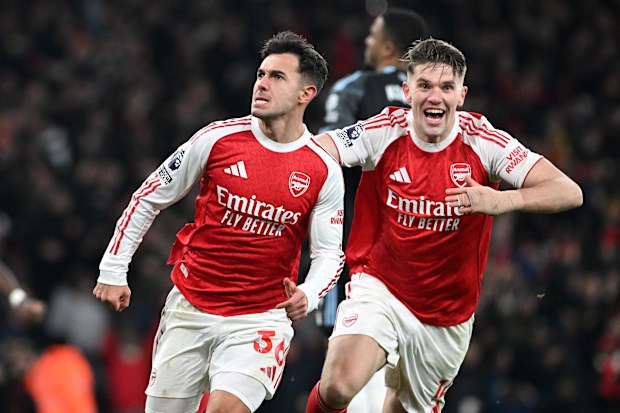 Arsenal’dan Martin Zubimendi, Aston Villa’ya karşı ikinci golünü kutluyor. Arsenal FC aracılığıyla Getty Images