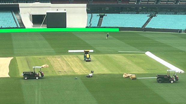 Sydney Testi’ne üç gün kala, pistin üzerinde belirgin bir yeşil ton hakim. Piste sabah yağmurundan sonra ağır bir silindir uygulanmış durumda.
