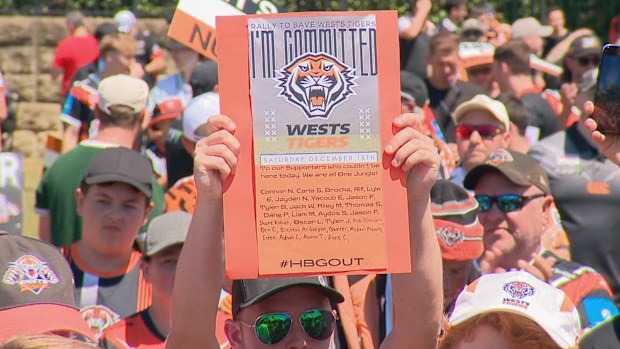 Wests Tigers taraftarları, Pratten Park Bowling Club’da Holman Barnes Group’a (HBG) karşı toplandı. Bu gösteri, kulüpte yaşanan karmaşanın ardından düzenlendi.