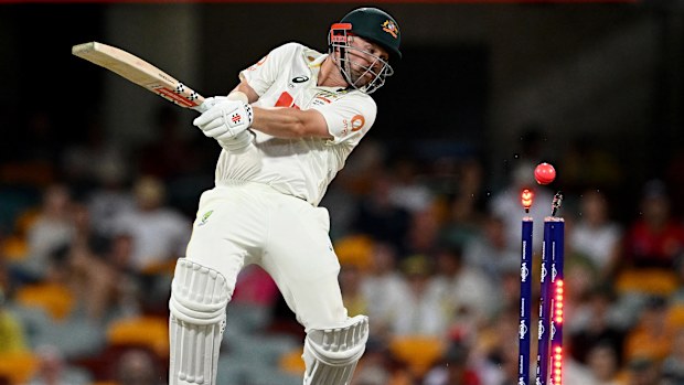 Travis Head, Gabba’daki pembe topla bowling yapıyor. Getty