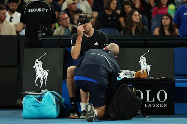 Alexander Zverev, oyun sırasında tıbbi yardım alıyor. Getty