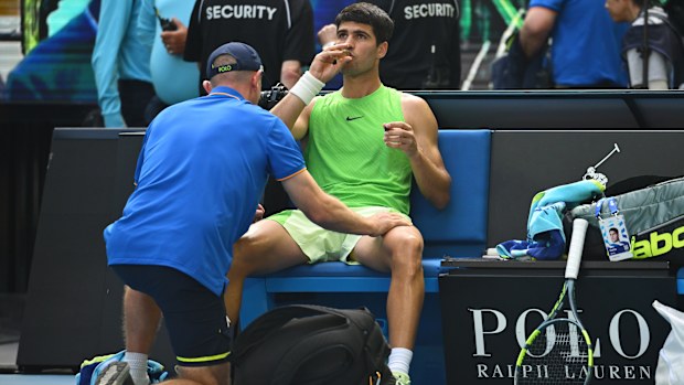 İlk iki seti kazanan Alcaraz, üçüncü setin 4-4’ünde maçı bitirme şansı yakalamıştı. Ancak 15-0 durumunda, bir puan sırasında oldukça rahatsız görünüyordu ve basit bir vuruşu uzun gönderdi. Jim Courier, bunu Nine kanalında “dikkatsiz” olarak tanımladı.